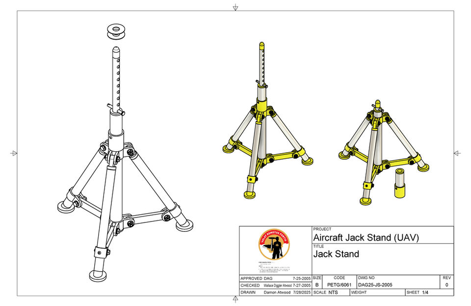 This one-of-a-kind aircraft Jack Stand blends advanced engineering with innovative design. These STLs will allow you to purchase your own materials and make this Jack Stand. These stands have been tested with HT-PLA and ASA. Also attched in the zip is detailed drawings with a BOM of what you need to make your own Jack Stand.